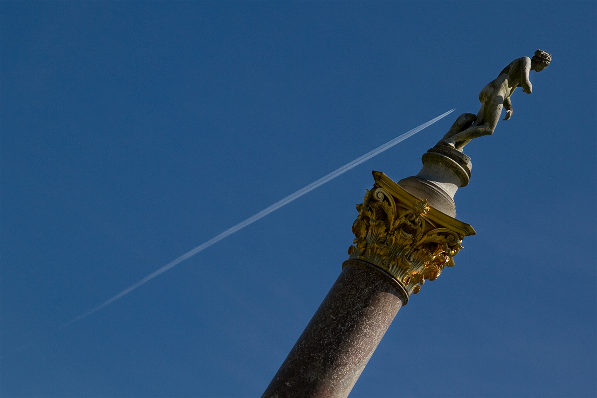 Ja, ich war schon wieder in Berlin! Bei einem schönen Ausflug zum Schloss Sanssouci konnte ich dieses „spannungs­ge­la­de­ne” Foto schie­ßen. Es ist sicher nicht das, was ich norma­ler­wei­se auf dieser Seite zeige, aber ich hatte einfach mal Lust auf etwas Neues. Sicherlich sorgt die Sache auch für Diskussionsstoff, oder? Es ist einfach ein Bild von einem Flugzeug, das ca. 7000 Meter an einer Statue vorbei fliegt… 😉