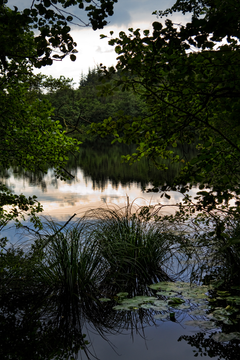 Auf dem Fußweg vom Parkplatz an der Stubbenkammerstraße zum Königsstuhl liegt der Herthasee. Hier findet man entlang des Ufers immer wieder Stellen, an denen man zwischen den Bäumen und anderen Pflanzen auf den stillen See blicken kann. Das Wasser wirkt in den windgeschützten Bereichen wie ein Spiegel…