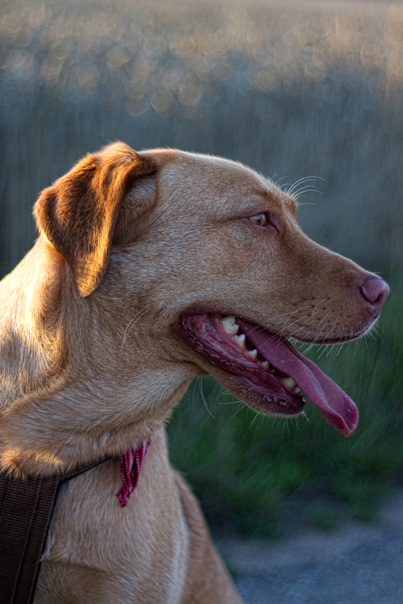 Ein gutes Essen bei Freunden, danach ein gemein­sa­mer Spaziergang über die Felder. Ein Kind spielt mit dem Hund und umgekehrt. Die Frauen unter­hal­ten sich über die wirklich wichti­gen Dinge des Lebens, die Männer haben ihren Spaß. Maddy ist ein ungari­scher Labrador, sehr kinder­lieb, lebhaft (137 Bilder, 2,5 Treffer) und einfach eine hübsche Dame. Die schon tief stehen­de Sonne liefert das passen­de Licht — da muss ich einfach die Kamera bemühen. Vielen Dank für den schönen Nachmittag!