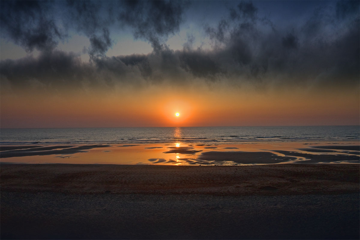 Sonnenuntergang II 24. September 2009Himmel, LandschaftAtlantik, Frankreich, Meer, Sonnenuntergang, Wasser, WolkenArndt-Peter Schaefers Canon EOS 40D (17mm, f/7.1, 1/200 sec, ISO160) Ein einsamer Strand, meine Kamera, Fotowetter — Was will man mehr?