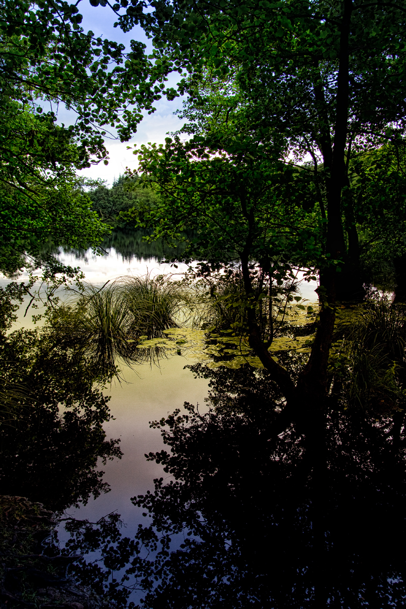 Schon vor einiger Zeit hatte ich ein ähnliches Bild vom Herthasee veröffentlicht — dieses hier hat einfach etwas länger in der Nachbearbeitung gedauert. Fasziniert haben mich vor allem die hohen Kontraste und die feinen Strukturen von Ästen, Blättern und Gräsern.
