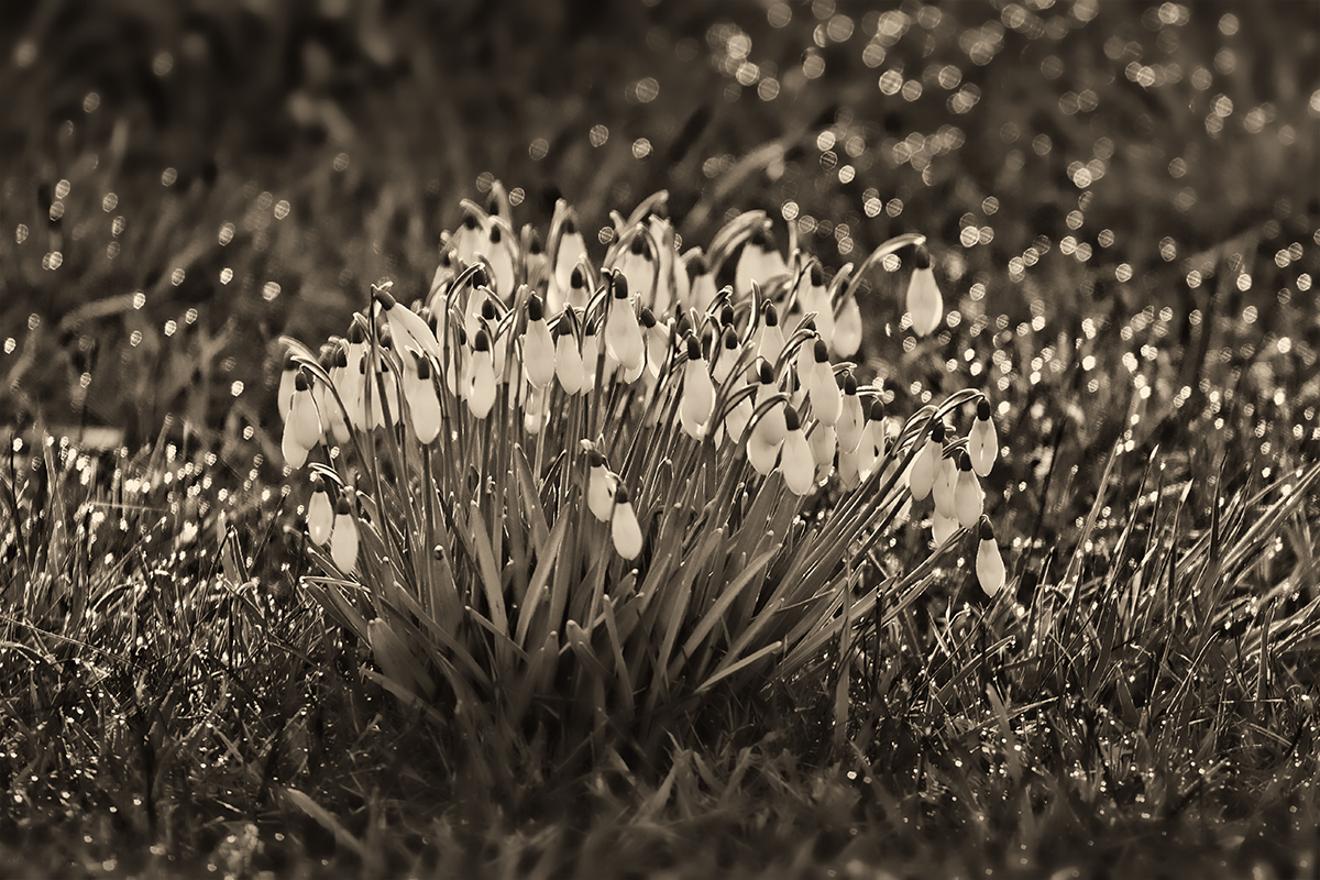Schneeglöckchen schwarzweiß Canon EOS 7D (400mm, f/6.3, 1/125 sec, ISO100)