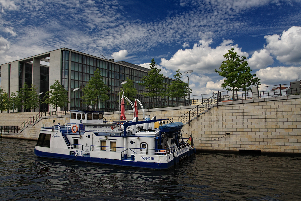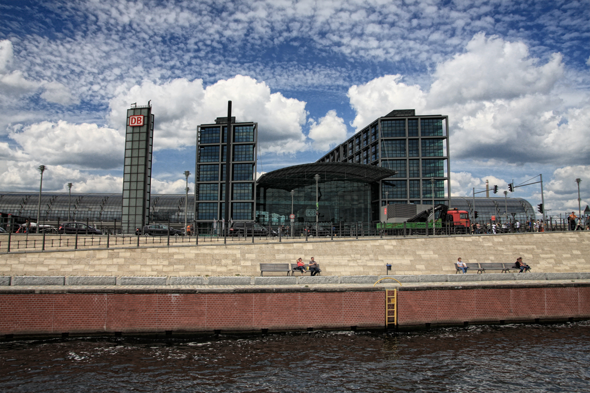 Während einer kurzwei­li­gen Bootsfahrt auf der Spree bot sich dieser Blick auf den Hauptbahnhof in Berlin. Sicherlich nicht gerade das aufre­gends­te oder attrak­tivs­te Motiv, doch mit diesem kurio­sen Hintergrund musste ich einfach abdrü­cken. Nachfolgend noch 2 weite­re Bilder, die am selben Tag entstan­den sind:
