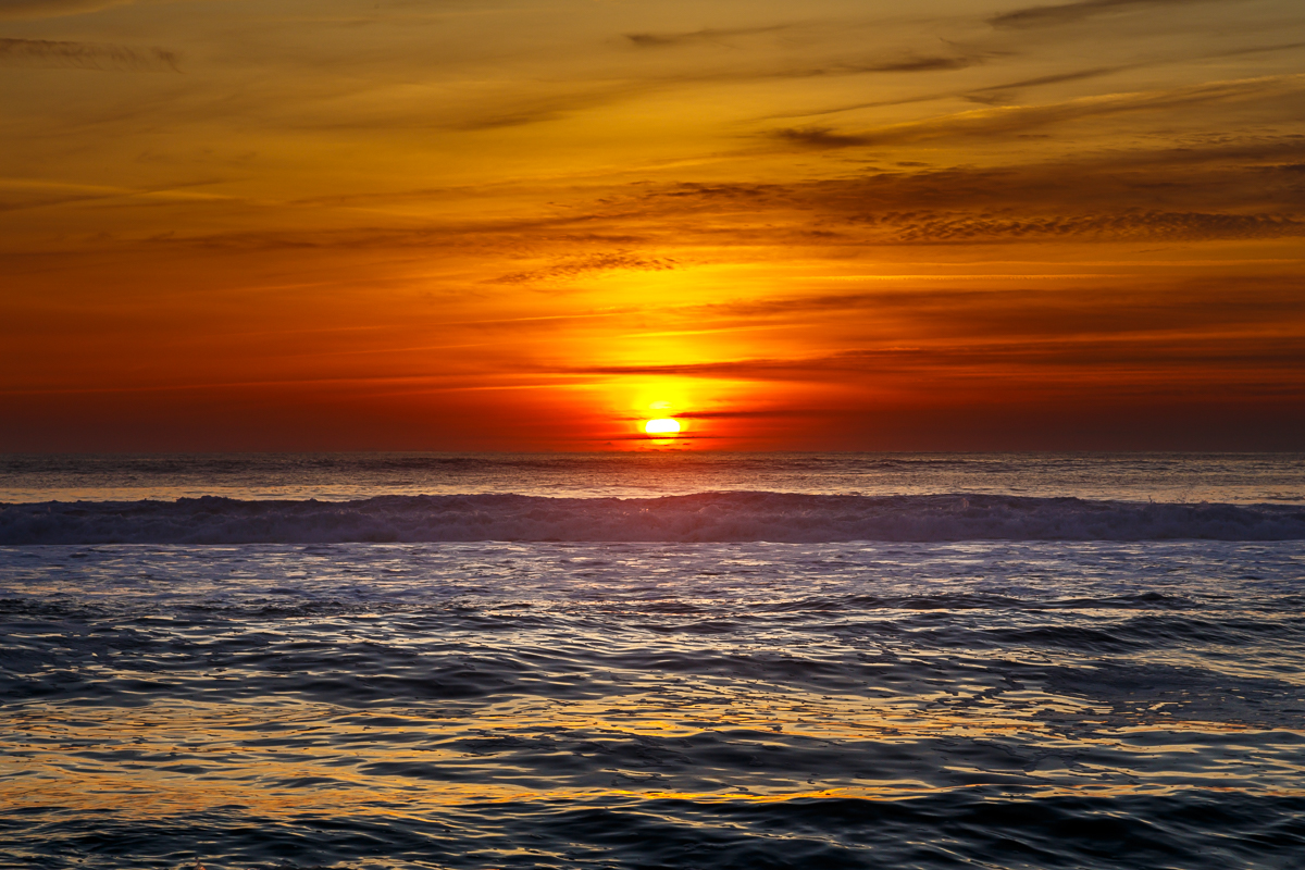 Meine treuen Besucher kennen es schon: Es dauert nicht lange und mich packt wieder der „Sonnenuntergangswahnsinn”. Ich entschul­di­ge mich in aller Form, aber gerade im Moment könnte ich einen solchen Anblick gut gebrau­chen. Sonne, Wärme, Meer, Brandung — mehr muss nicht sein…