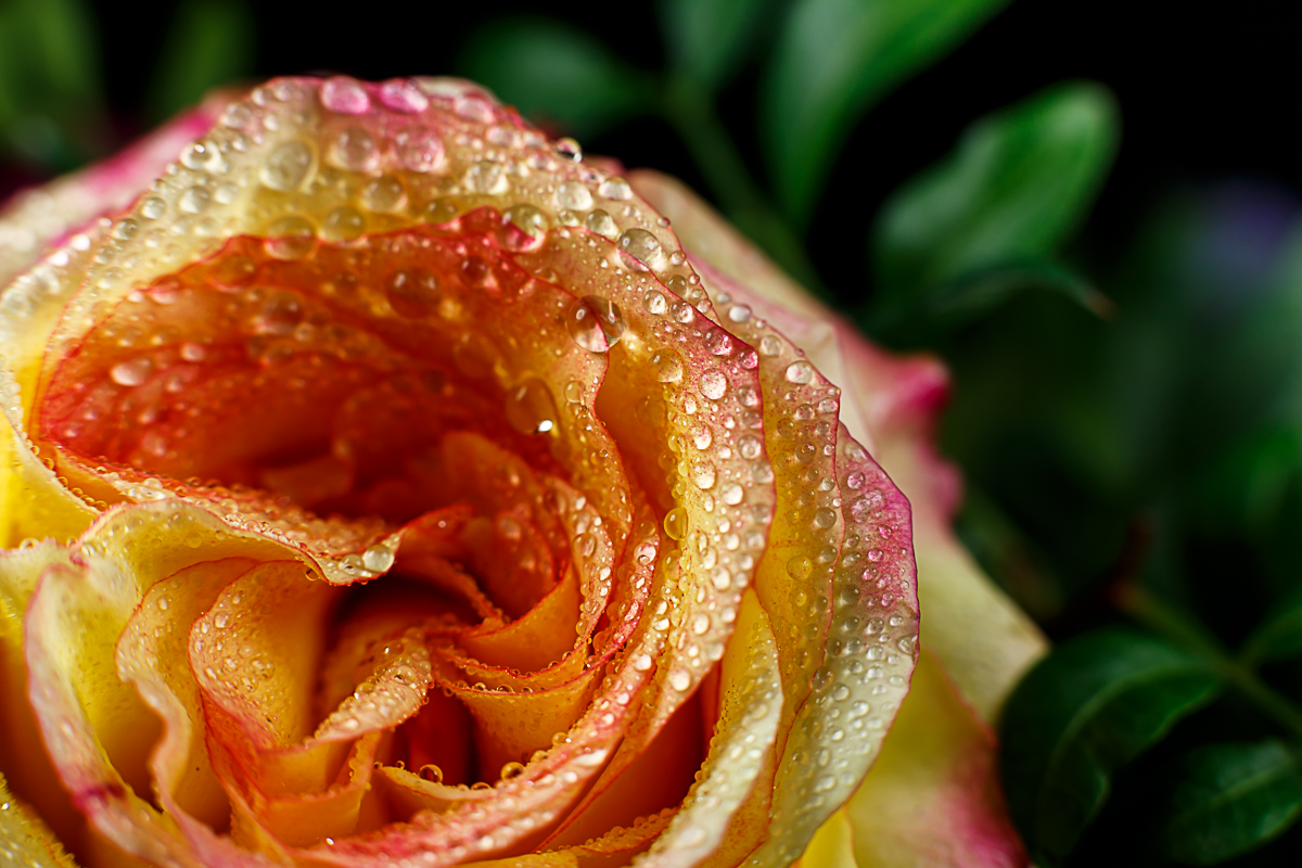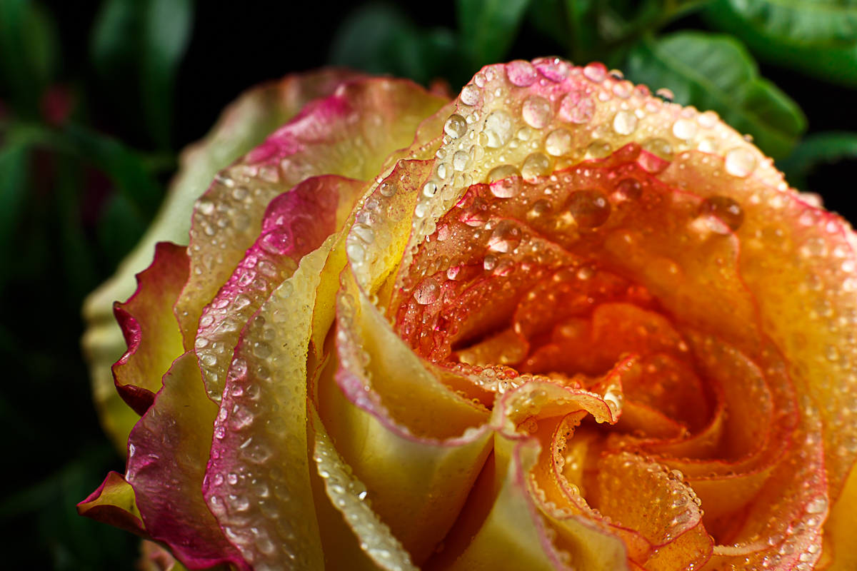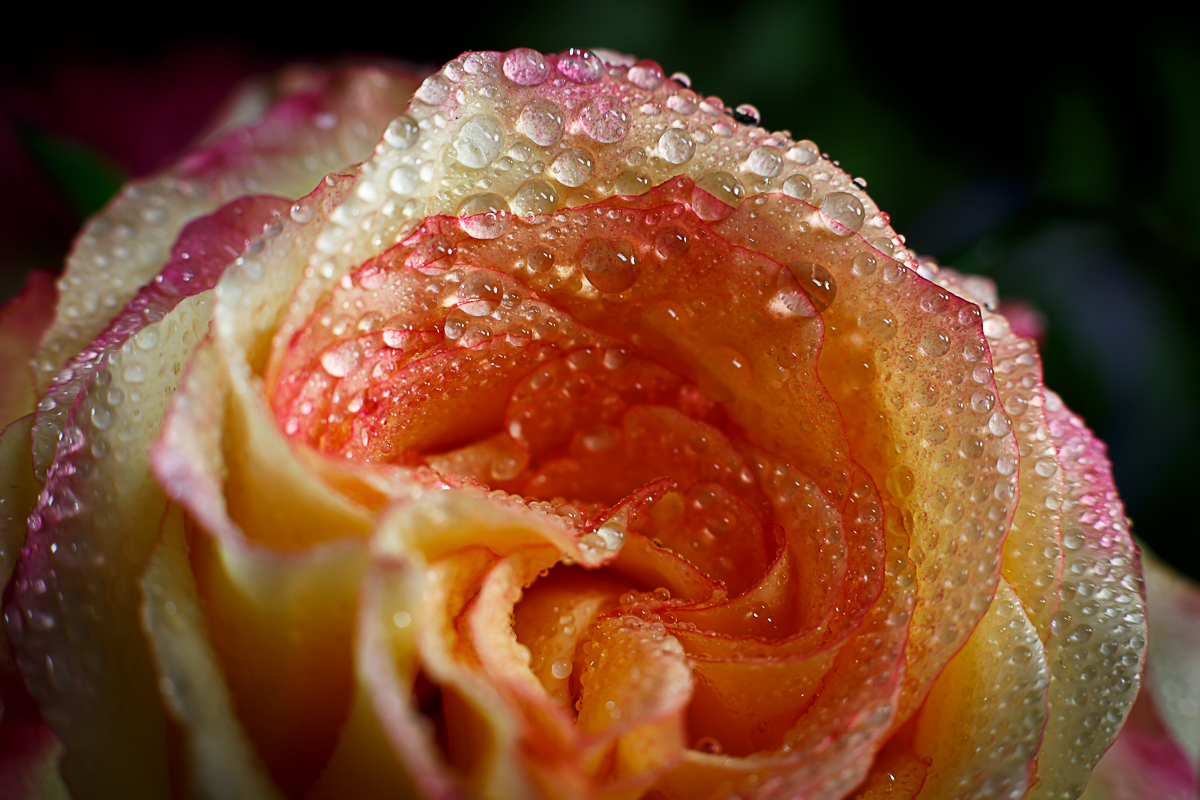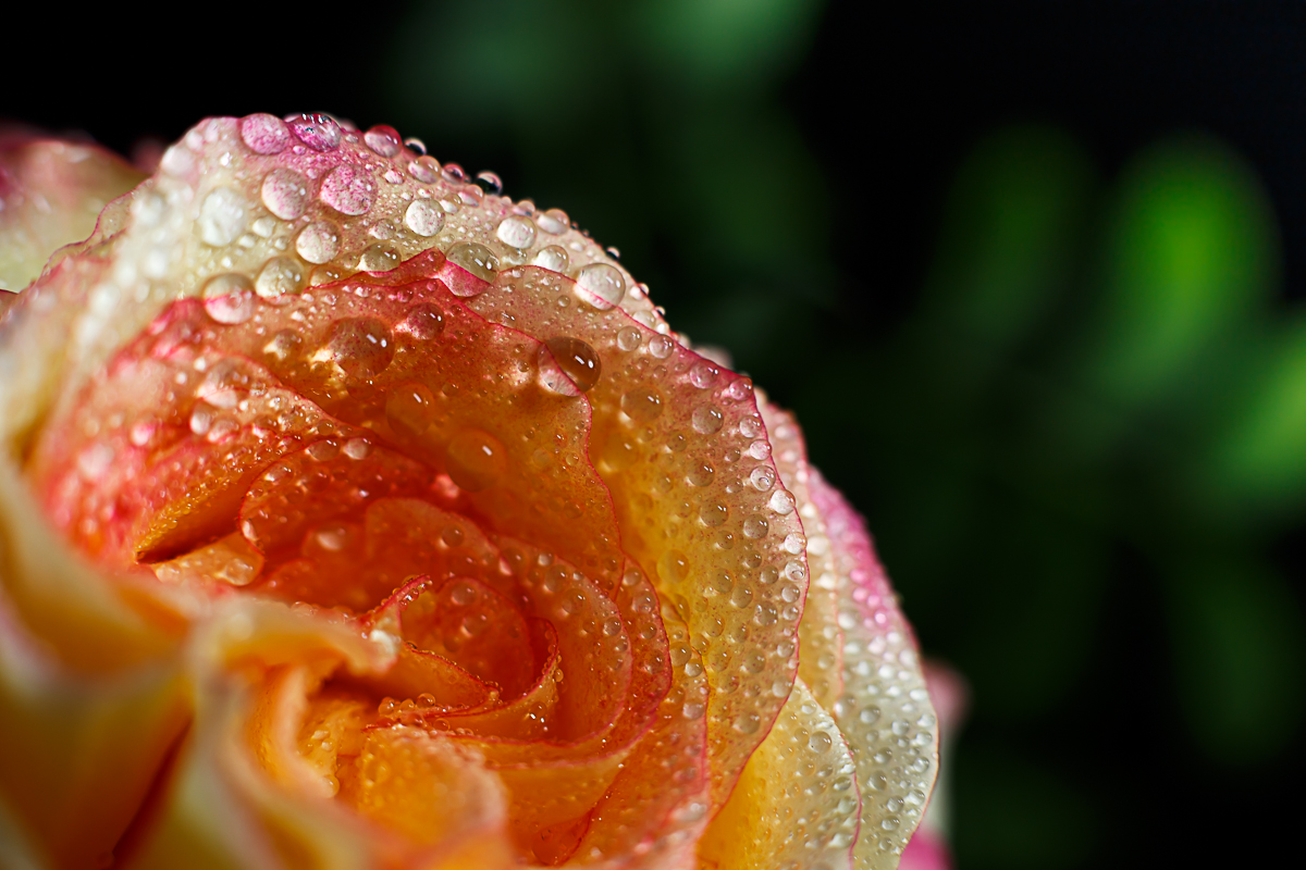Bevor die Rose im Wasser versenkt wurde, (Unterwasserblumenland II) wollte ich auch einige „konven­tio­nel­le” Aufnahmen erstel­len. Dafür habe ich die Rose mit Wasser besprüht, was die Bilder meiner Meinung nach etwas inter­es­san­ter oder außer­ge­wöhn­li­cher macht. Die Fotos entstan­den mit einem Canon Extension Tube EF25 II (Makrozwischenring) und dem Canon EF50mm ƒ1.4 USM.