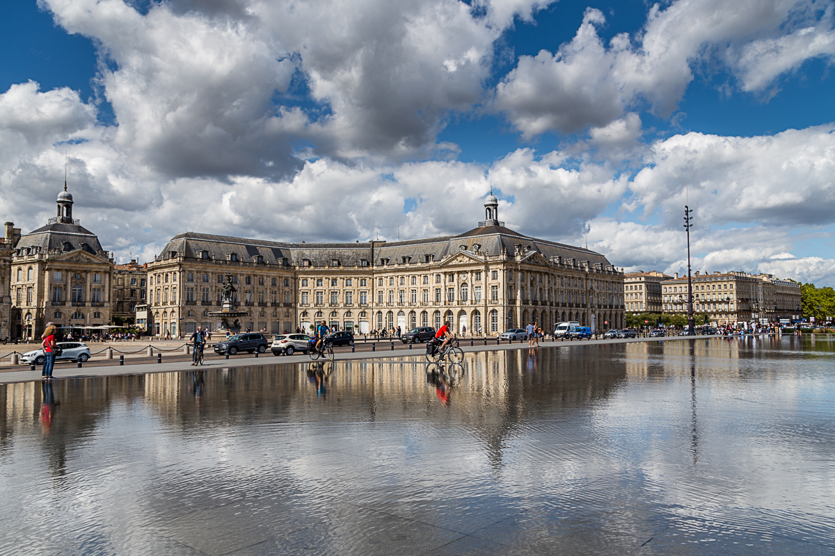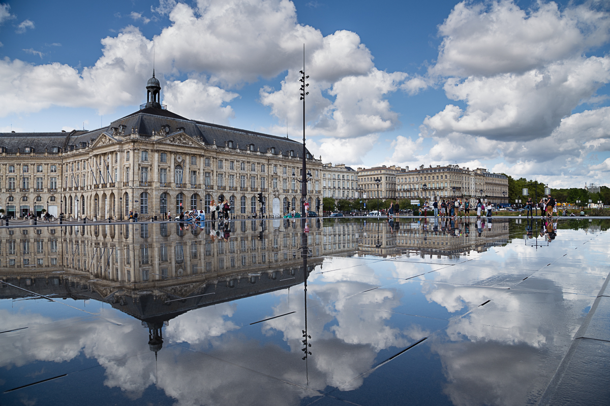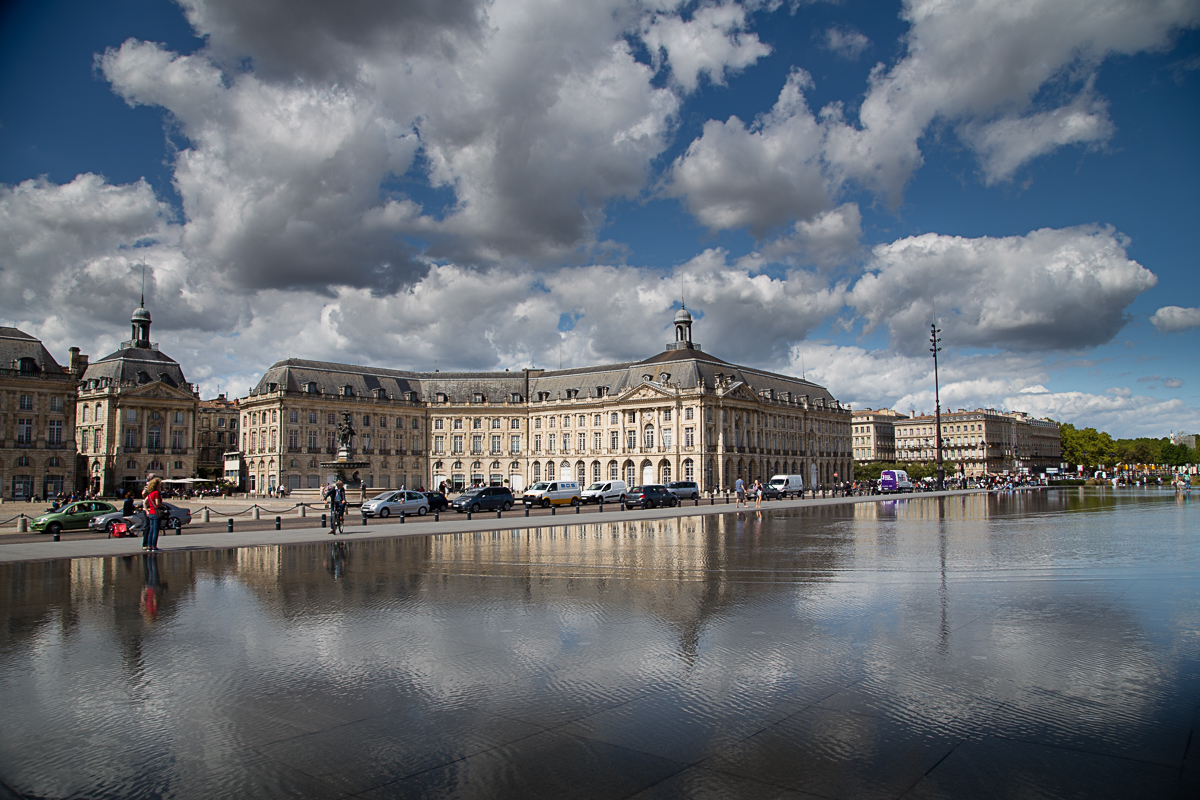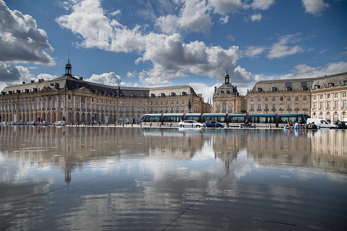 Hier zeige ich einige meiner Lieblingsbilder vom Place de la Bourse mit dem „Miroir d´eau” in Bordeaux. Es handelt sich hier wirklich um einen genialen Wasserspiegel, der interessante Reflexionen bietet. Leider ist die gesamte Fläche beinahe den ganzen Tag von Touristen bevölkert (inklusive mir selbst), trotzdem macht es immer wieder Spaß hier zu sein…