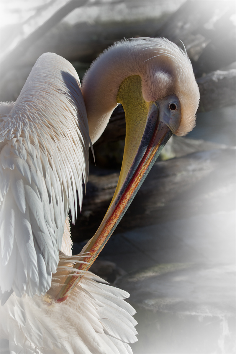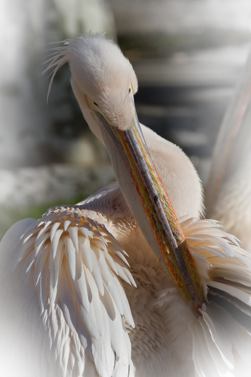 Wie bereits unter Pelikan I verspro­chen, veröf­fent­li­che ich hier nochmal einige Bilder zu den Pelikanen. Hier kann man sehr gut sehen, wie mit dem riesi­gen Schnabel das Gefieder gerei­nigt wird. Bei Bild img_0551b finde ich die „Frisur” und den Gesichtsausdruck einfach genial und ich will eigent­lich gar nicht wissen, was dem Kameraden da gerade so durch den Kopf ging. Hoffentlich dachte er nicht böse über mich und meine Kamera.Wer lässt sich während der Körperpflege schon gerne fotografieren?