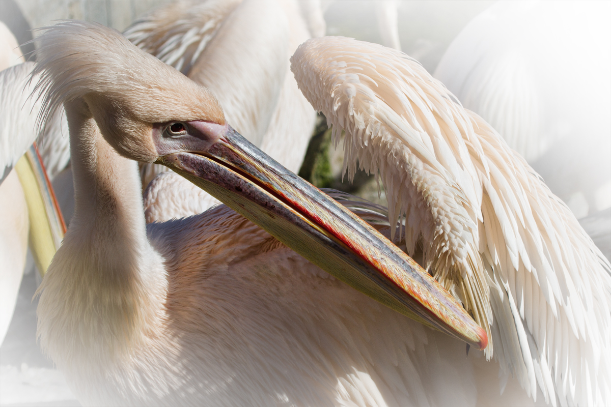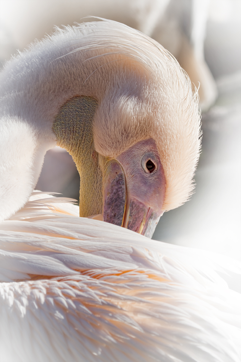 Nach einigen Fototouren mit dem Thema Federvieh muss ich feststel­len, dass mich die Pelikane mittler­wei­le wohl am stärks­ten faszi­nie­ren. Die Farben und Strukturen am Schnabel, das inter­es­san­te Gefieder und die Schwierigkeit, diese Tiere vernünf­tig abzulich­ten, spornen mich an. In den nächs­ten Tagen werde ich unter Pelikan II eine weite­re Serie zu diesem Thema veröffentlichen.