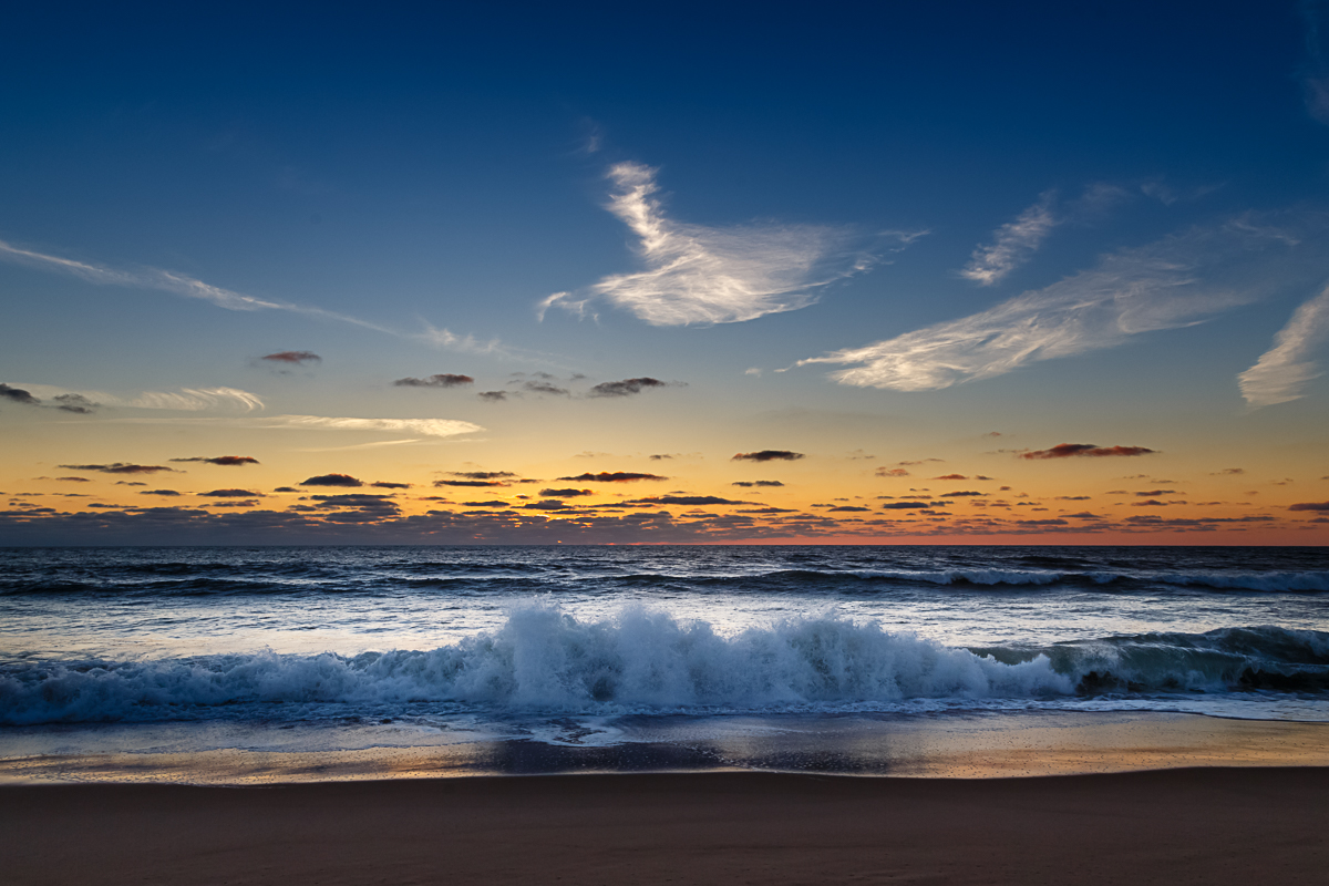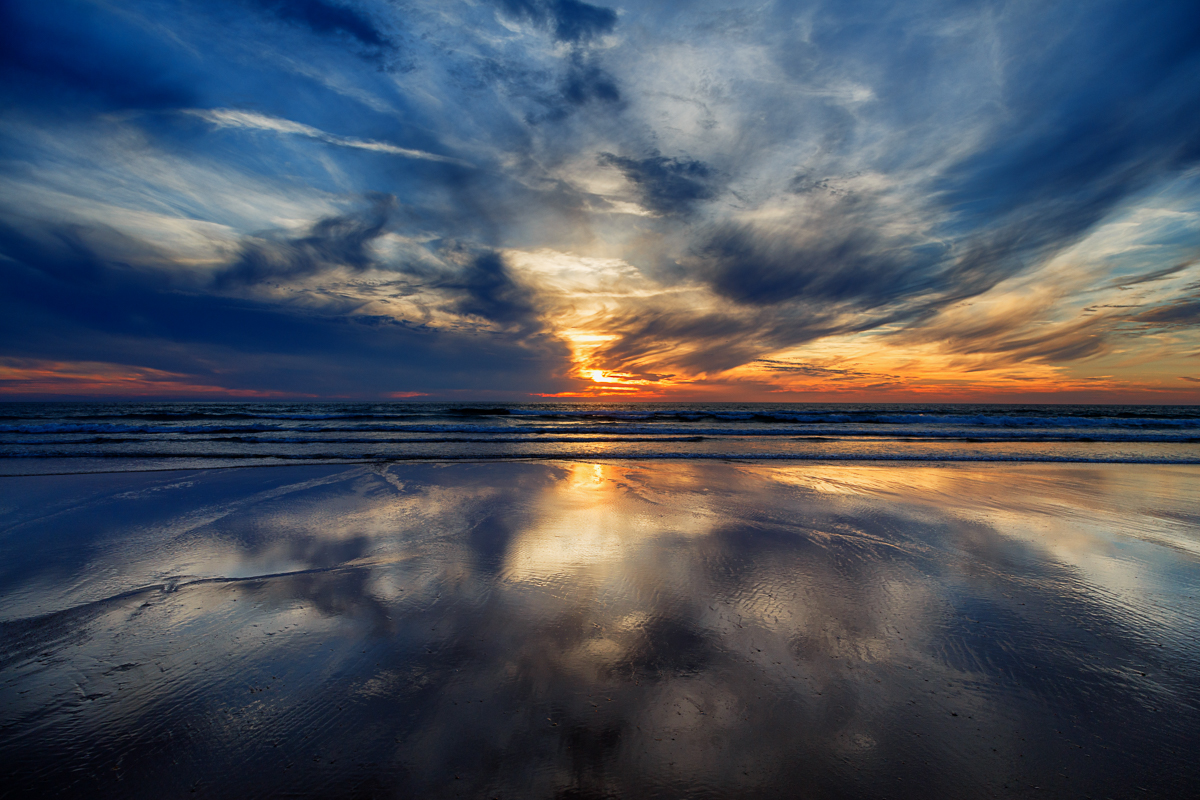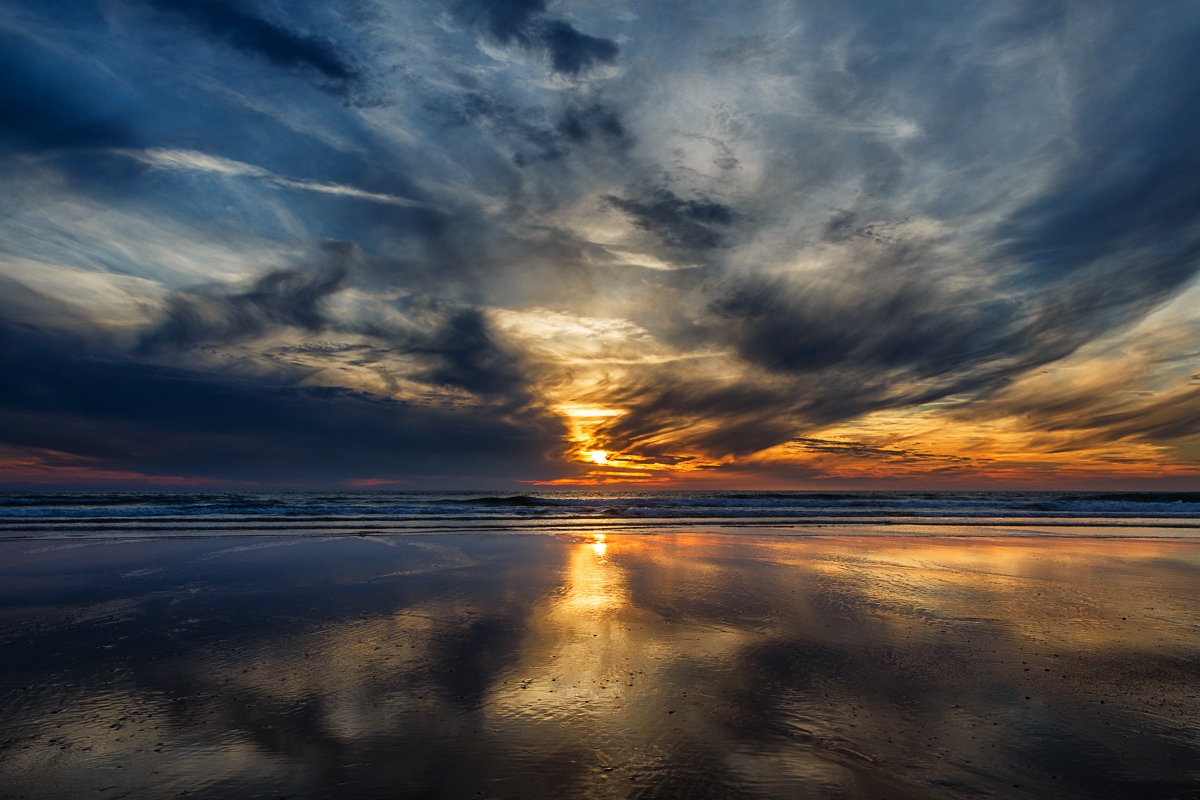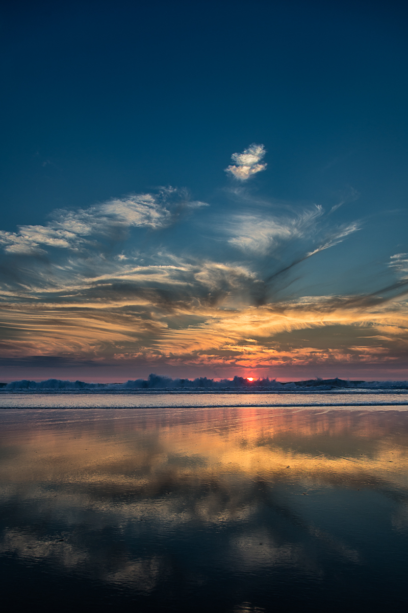 Aus der unend­li­chen Reihe meiner Strandbilder: Es gibt diese Abende, an denen alles noch etwas klarer erscheint — Himmel, Wolken, Horizont, Wasser, Spiegelungen sogar der Sand sieht irgend­wie feiner und glatter aus. Ich habe keine Ahnung, wie die Natur es erreicht, aber es passt alles zusam­men. Hier hatte ich auch schon mal diesen Eindruck…
