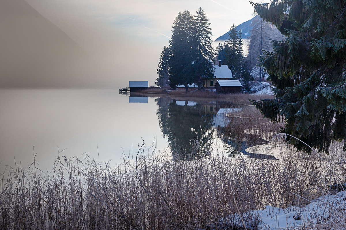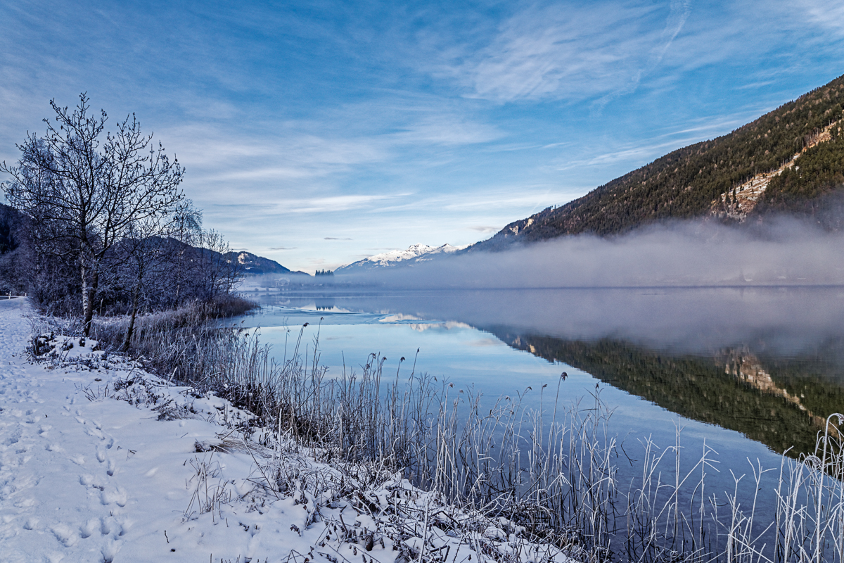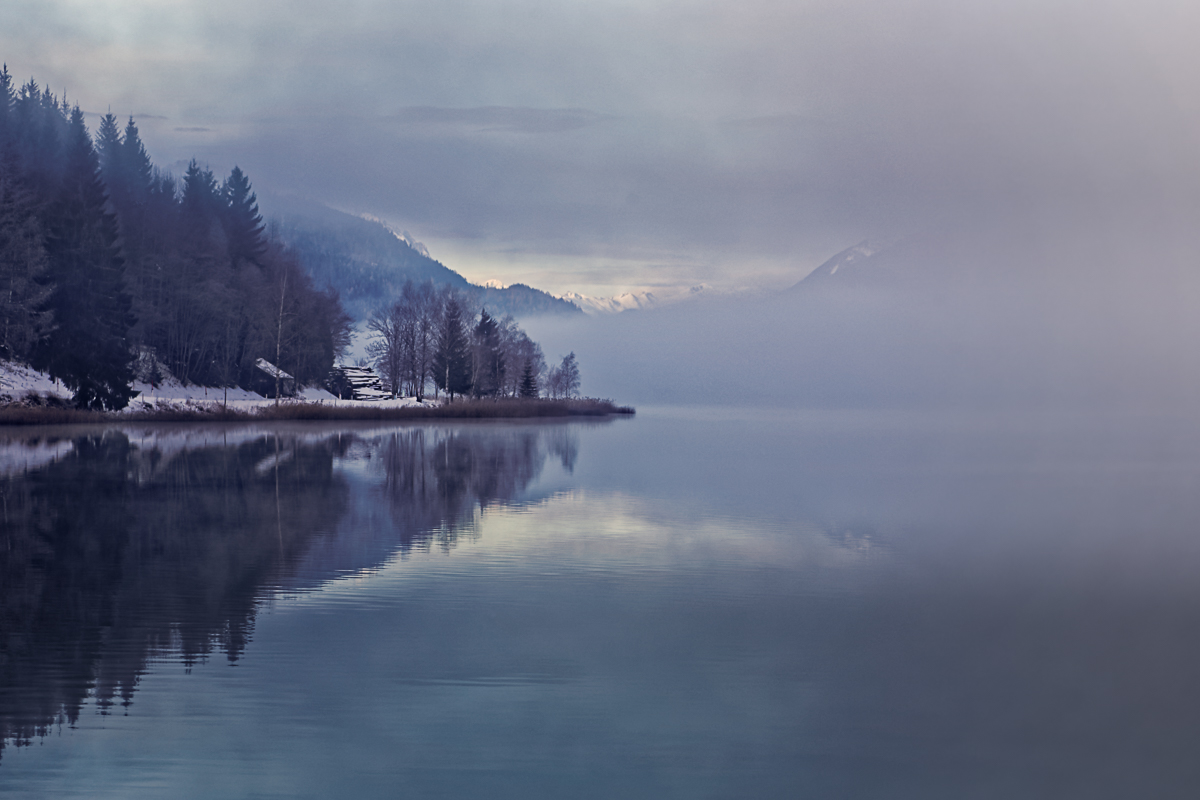 Es ist einfach ein schöner Anblick, wenn der Nebel langsam über den See zieht. Ständig ergeben sich durch die Bewegung neue Motive und im selben Moment verdeckt der Nebel wieder einen anderen Bereich. Einfach den Auslöser drücken — das ist die beste Lösung. Zuhause macht es dann immer wieder Spaß die Ergebnisse zu bearbeiten…