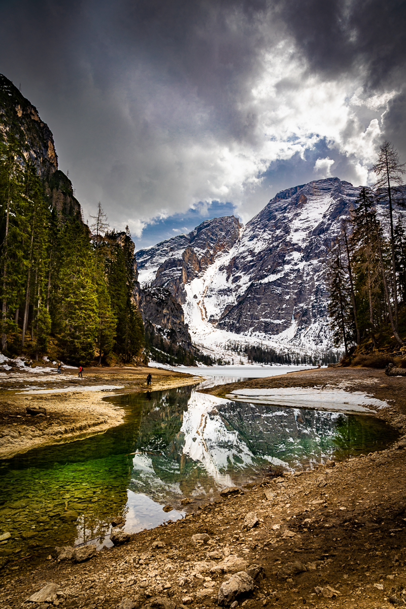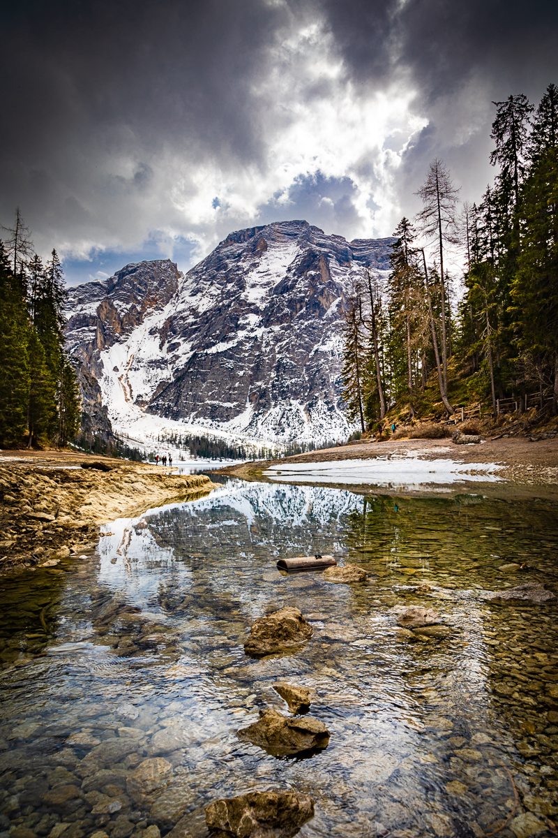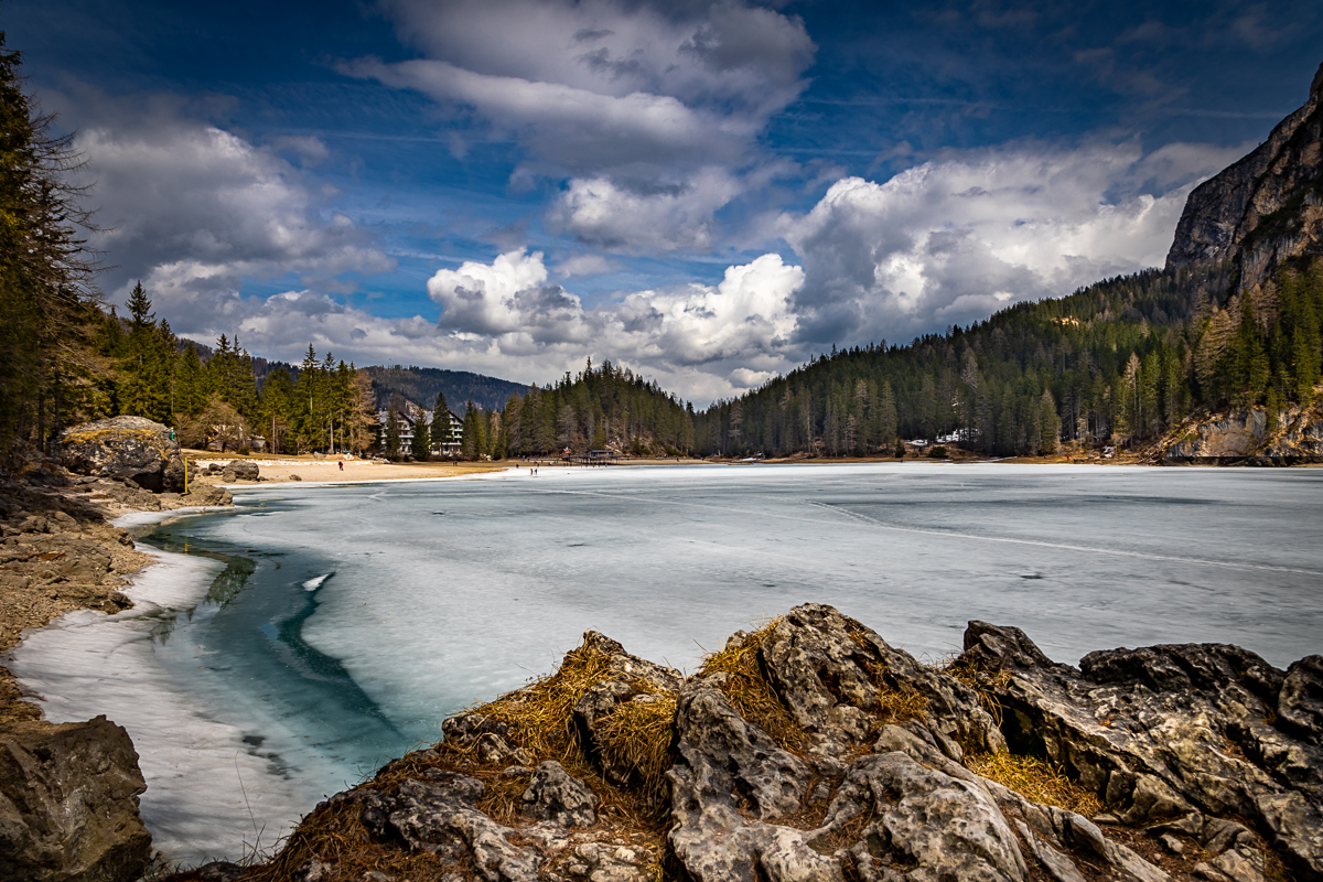 Der Pragser Wildsee steht schon lange auf meiner ewigen Liste der Reiseziele. Leider wird man während der Saison mehr oder weniger um den See gescho­ben – von Einsamkeit und Stille in der Natur kann man dann nur träumen. Im April sind die Besucherzahlen zwar überschau­bar, der See ist dafür noch zugefro­ren. Trotzdem konnte ich einen schönen Tag mit der Familie erleben und einige Bilder mitbringen.