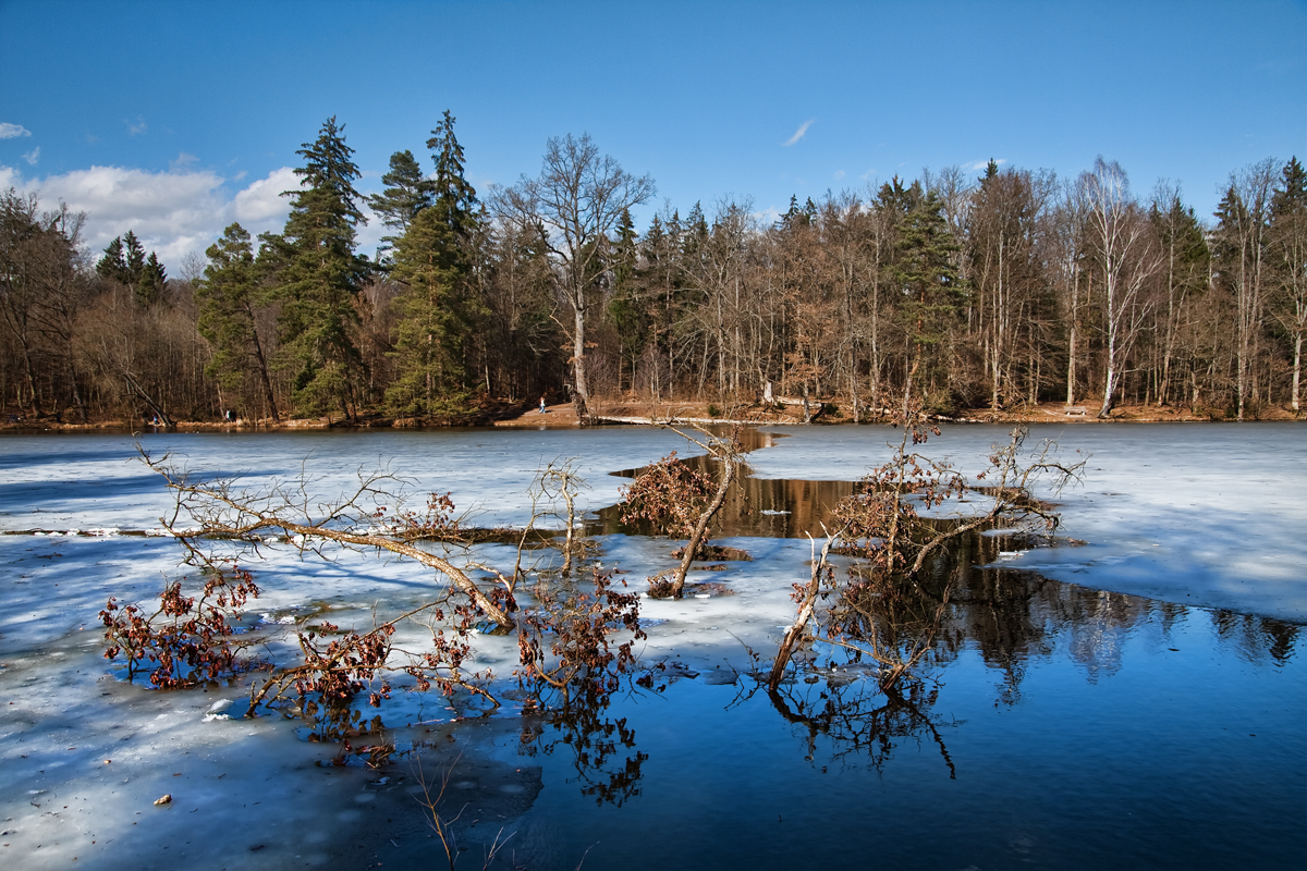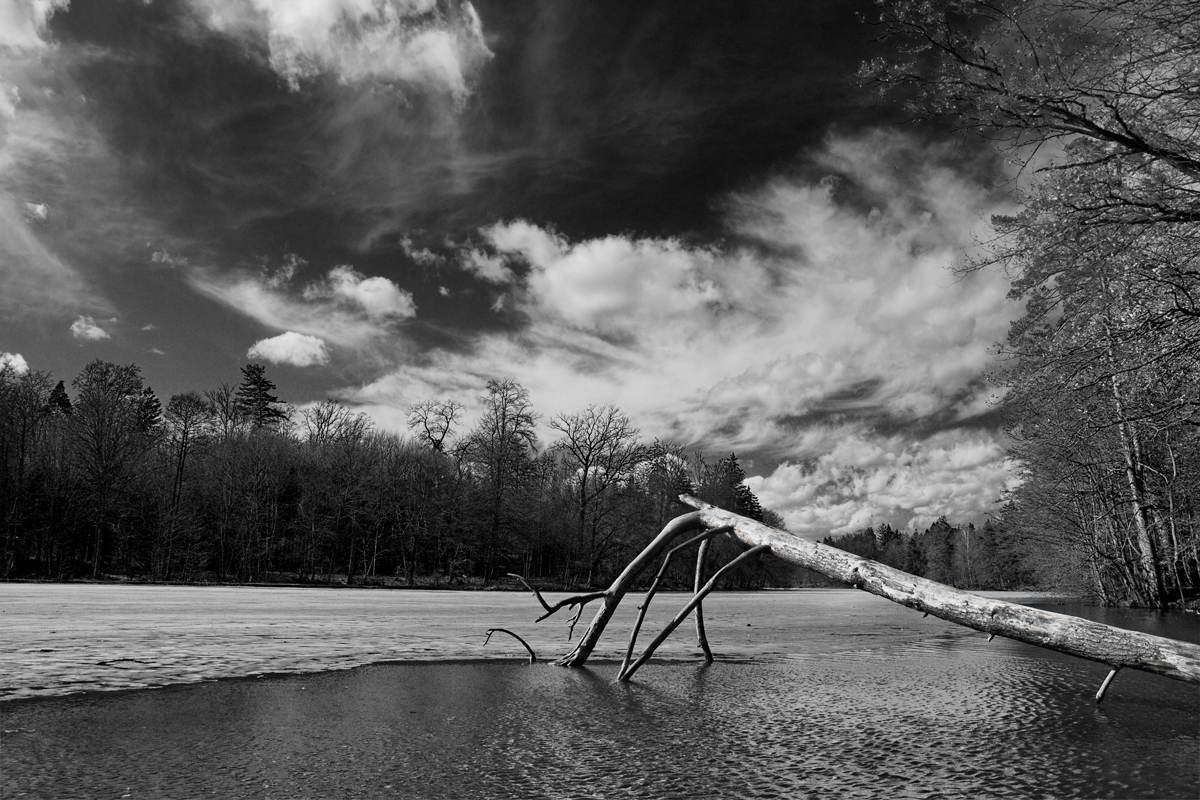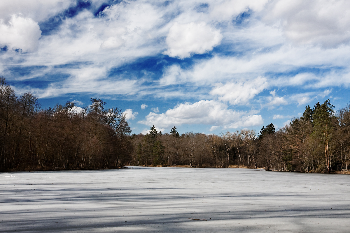 Ein immer wieder beliebtes (leider oft auch sehr belebtes) Ausflugsziel ist das „Bärenschlössle im Rotwildpark” in Stuttgart. Wenn man sein Fahrzeug an der Magstadter Straße abstellt, führt der Weg zum Bärenschlössle entlang der drei Seen Pfaffensee, Neuer See und Bärensee. Sturmtief Xynthia tobte — nicht ganz ungefährlich, dafür weniger Jogger und Spaziergänger. Das restliche Eis und die interessanten Wolken gab es wie immer gratis…