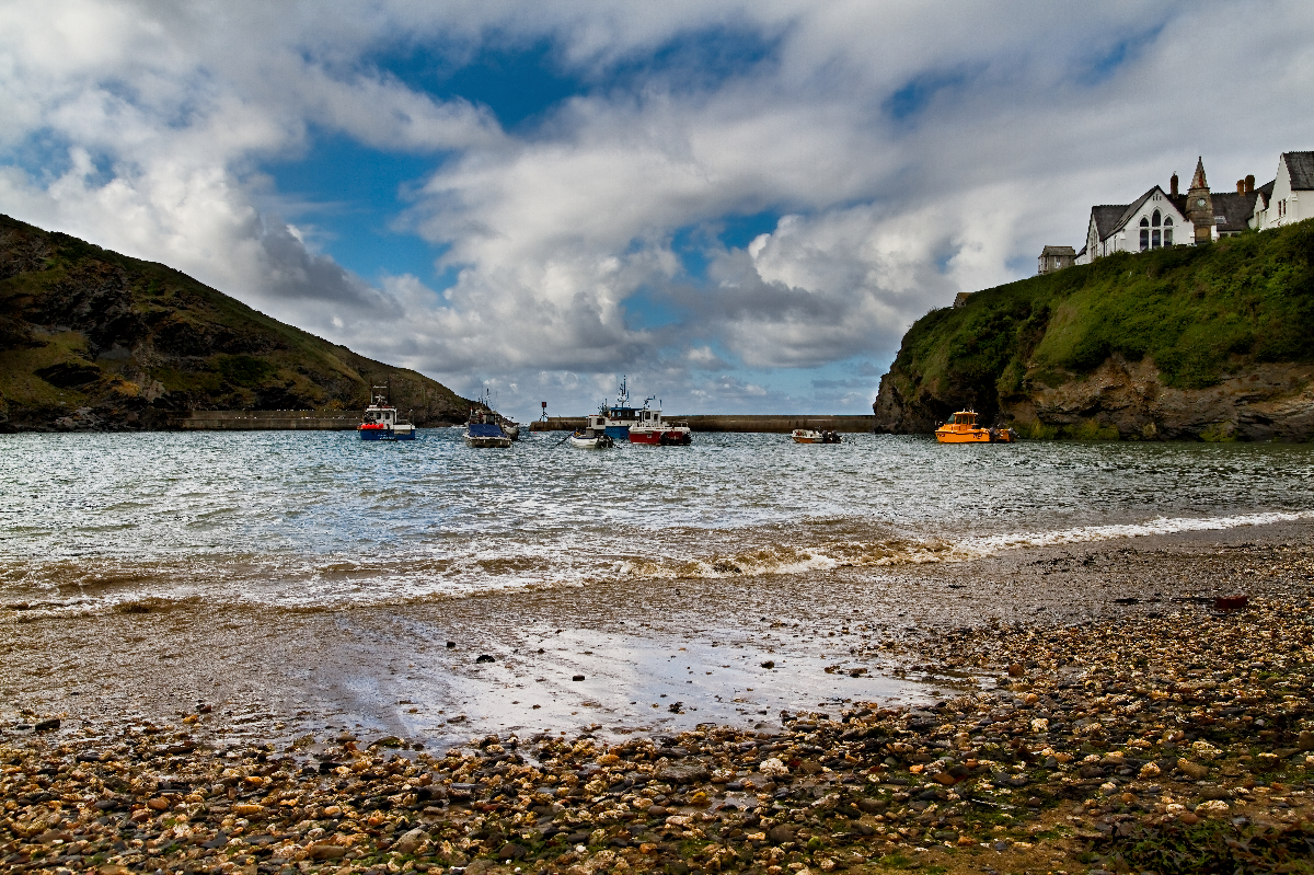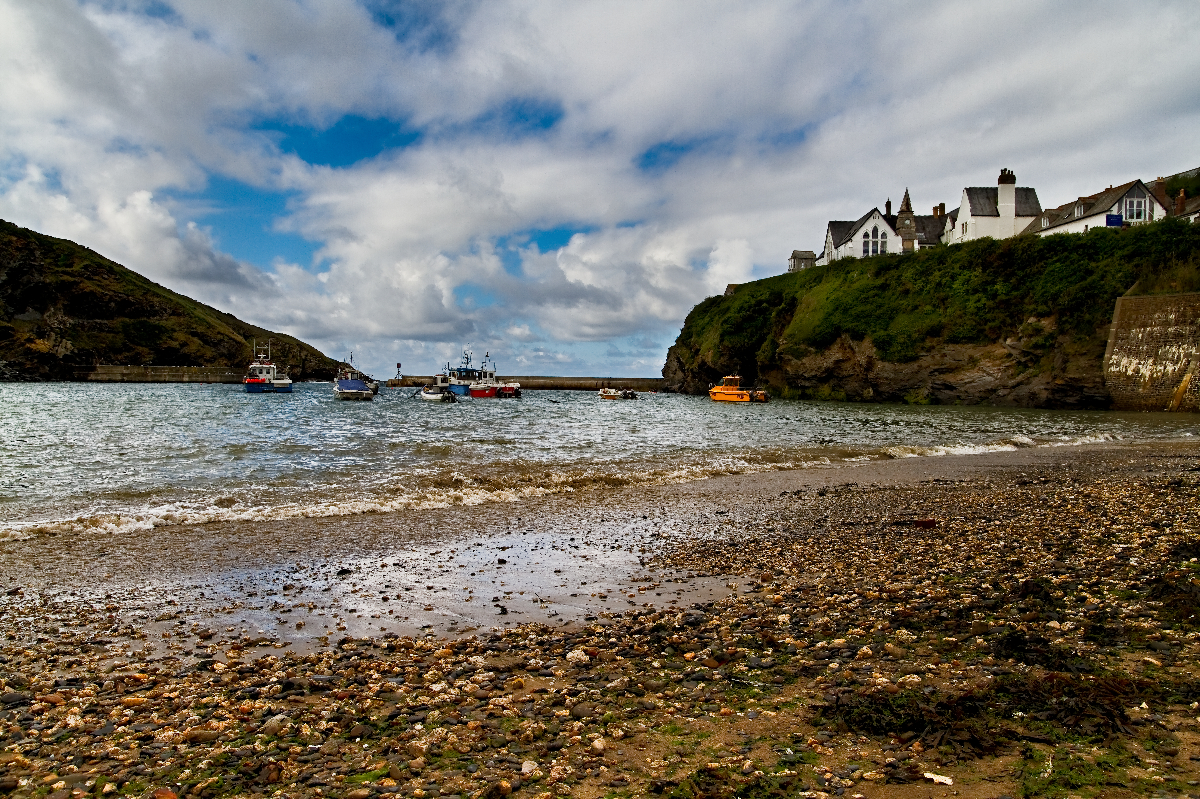 Das schöne Fischerdorf Port Isaac liegt an der Küste der „Celtic Sea” in der Grafschaft Cornwall (Süd-England). Die nächs­te größe­re Ortschaft ist Wadebridge. Steile Sträßchen führen hinab zum Hafen, von wo aus man diesen Ausblick genie­ßen kann. Die Aufnahmen wurden mit DxO Optics Pro in 3 verschie­de­nen Belichtungsstufen mit Hilfe des HDR Presets entwi­ckelt. Danach konnten in Adobe Photoshop Elements die Bereiche mit der besten Belichtung zusam­men­ge­führt werden.