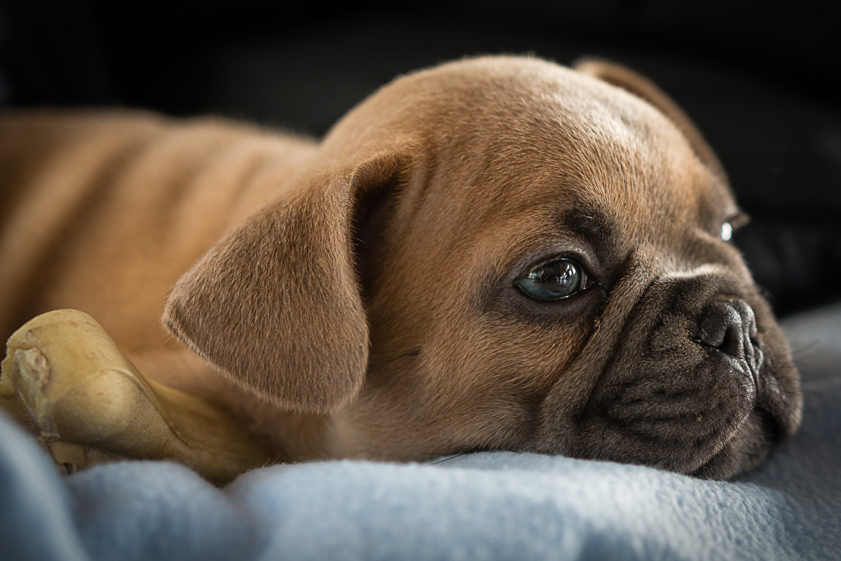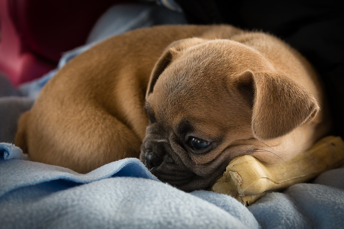 Zufällig konnte ich Bilder von diesem kleinen Zwerg (Justin, 7 Wochen alt) erstel­len. Noch so jung und schon gegen einen Bus gelau­fen. Wahrscheinlich ist es genau die Knautschzone, die den kleinen Kerl so derma­ßen knuffig und süß erschei­nen lässt…