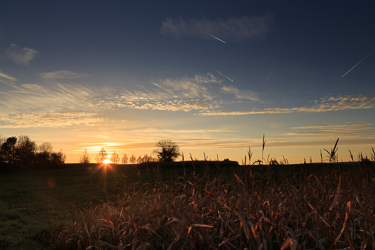 Einfach schön, wenn ich es mal schaf­fe, am Morgen den Sonnenaufgang genie­ßen zu können. Meistens werfe ich einen kurzen Blick aus dem Fenster und entschei­de dann, ob ich weiter­schla­fe oder ob ich auf Bilderjagd gehe. An diesem Morgen hat es sich gelohnt aufzustehen…